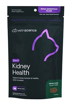 Žvýkací pamlsek Renal Essential Feline je založen na receptuře nejlépe podporující ledviny kočky v období zátěže.