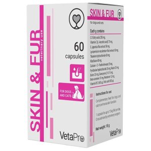 Skin & Fur je nutriční doplněk pro psy a kočky s kožními poruchami (suchá, zarudlá, svědící, šupinatá kůže – lupy, vypadávání …