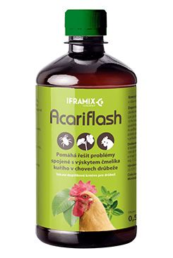 Přípravek proti čmelíkům Acariflash je přírodní tekuté doplňkové krmivo pro drůbež, na bázi výtažků z rostlin, které jsou čmelíkům nepříjemné a odpuzující.