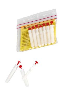 Použití : Strukové zátky s jemným štětečkem a lubrikačním gelem se vsunují do zanícených strukových kanálků po vydojení zanícené čtvrtě vemene.