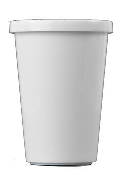 Lékárenský plastový kelímek s víčkem, o objemu 250 ml, vyrobený ze zdravotně nezávadných vstřikovaných plastů, určený zejména pro farmaceutický průmysl.