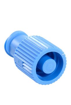 Uzávěr na injejkční stříkačky nesterilní. Modrá barva.