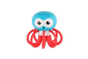 Chrastítko ve tvaru chobotnice potěší každé miminko svým roztomilým vzhledem i jemným chrastivým zvukem. Lehký a dobře uchopitelný tvar padne do malých dětských ručiček a podporuje rozvoj jemné motoriky i sluchového vnímání. Vyrobeno z nezávadného plastu. Velikost hračky: 8 × 8 cm Vhodné pro děti od narození