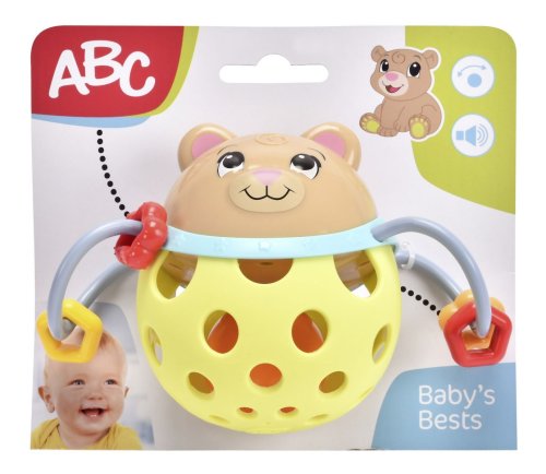 Kulaté chrastítko ve dvou barvách: žlutá - medvídek nebo modrá - panda. Velikost 10 cm.