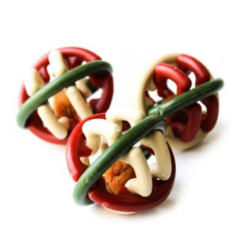 Dentální pamlsek ve tvaru chrastítka plněného masem.