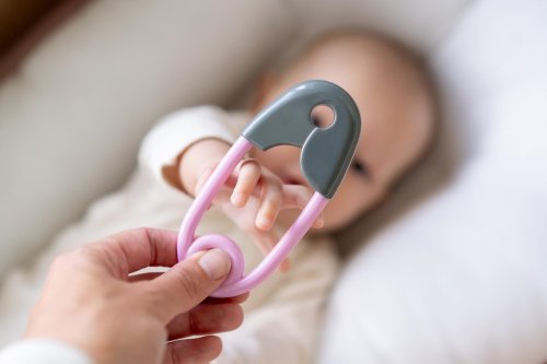 Chrastítko špendlík je klasická dětská hračka, která Vašemu dítěti nesmí chybět. Je ideální pro první pokusy miminka držet hračku. Snadno se uchopí, je velmi lehké a kontrastní provedení miminka jistě zaujme. Podporuje rozvoj jemné dětské motoriky a smyslového vnímání. Díky malým kuličkám uvnitř jemně chrastí. Velikost špendlíku: 12 cm Rozměr balení: 12 x 19 cm Vhodné pro děti od narození
