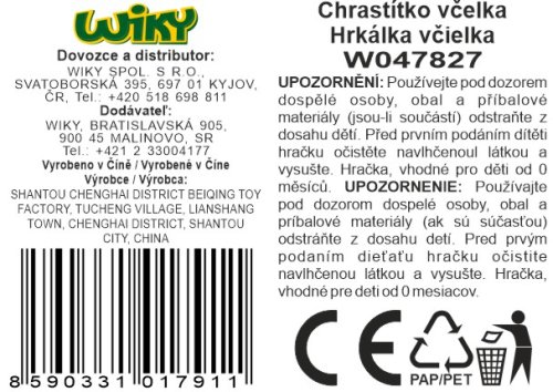 Chrastítko včelka. Rozměry 14,5x3x21,5 cm.
