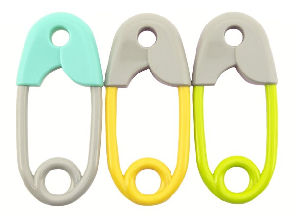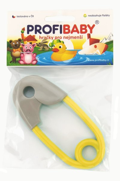 Vícebarevné plastové chrastítko ve tvaru zavíracího špendlíku. Lehké a snadno uchopitelné. Podporuje rozvoj jemné motoriky a smyslového vnímání. Rozměry: 12 x 5 x 1,2 cm.