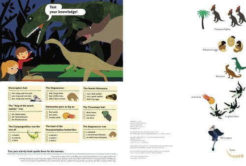 Věděli jste, že slovo dinosaurus znamená "velký ještěr"? Slyšeli jste někdy o zvířeti, které muselo každý den spolykat stovky kilogramů rostlin, aby se nasytilo? A znáte jméno největšího známého létajícího zvířete všech dob? Kniha aktivit "V době dinosaurů" odpoví na všechny tyto otázky a mnoho dalších, také představí řadu interaktivních aktivit, samolepek a zábavných aktivit pro děti. Tato kniha, láskyplně ilustrovaná Olivií Cosneau, uvádí děti do světa dinosaurů a zabaví je na dlouhé hodiny prostřednictvím zábavných činností, jako je nalepování chybějících spodních zubů Tyrannosaura rexe nebo vybarvování zádových plátů Stegosaura. Během aktivit se děti dozvídají o různých typech jich vymřelých dinosaurů, o jejich stravě, o tom, jak lovili a chránili svá mláďata, a další zajímavá fakta. Nakonec otestujte své nové znalosti v krátkém kvízu. Hlavní vlastnosti: 84 samolepek24 aktivit1 kvízilustrace Olivia Cosneaukniha v angličtině