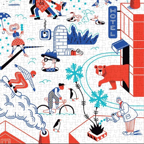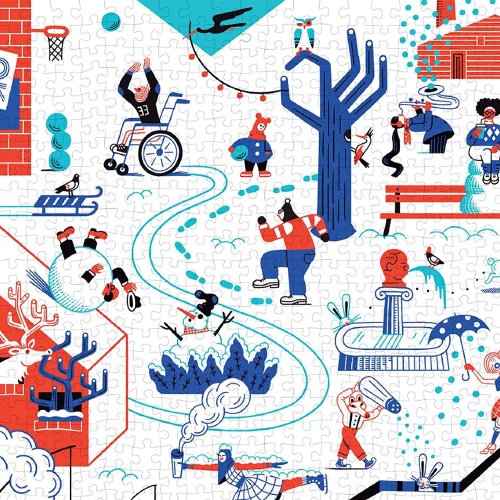 Jeden okamžik v dokonalém zimním dni. Toto 1000dílné puzzle je plné rozmarných postaviček, neočekávaných mrazivých detailů a spousty akce v chladném počasí - muž se válí ve sněhové kouli, vánoční stromky zpívají, lyžař jede nahoru místo dolů, liška sype sůl na silnici... Španělská ilustrátorka Luci Gutierrez přináší svou lásku k zábavným postavičkám a fascinujícím detailům do klasické zimní scény. Tato skládačka jistě poskytne celé rodině hodiny zábavy. Hlavní vlastnosti: obsahuje 1000 dílků a plnobarevný výtisk obrázku puzzlerozvíjí logické myšlení a motorikuskvělá rodinná aktivita