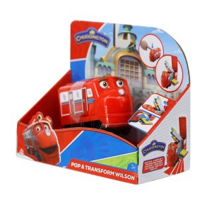 Lokomotiva s transformační funkcí. Po stisknutí vrchní části lokomotivy se automaticky vysunou různé pracovní pomůcky.