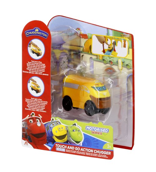 Pohyblivá lokomotiva Touch And Go. Na vršku vláčku se nachází 2 tlačítka .Stiskem jednoho se mechanismus spustí a vláček se rozjede. Stiskem druhého tlačítka se vláček zastaví.
