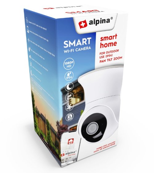Rádi si svůj cenný majetek co nejlépe hlídáme. Vzpomeňte si například na dům, který sdílíte se svou rodinou, nebo na firmu, pro kterou jste léta tvrdě pracovali. Abyste mohli mít věci co nejvíce na očích, alpina Smart home představuje chytrou wifi kameru pro venkovní použití. Tato šikovná bezpečnostní kamera má funkci otáčení a naklánění, noční vidění až na 10 metrů, zvukový a pohybový senzor a má také certifikaci IP54 proti prachu a vodě. Stručně řečeno: perfektní gadget, abyste mohli bedlivě sledovat okolí vašeho domova nebo firemních prostor.WiFi kamera pro venkovní použitíVenkovní WiFi kamera alpina Smart home je dokonalou bezpečnostní kamerou pro váš domov nebo firemní prostory. Namontujete jej na strategické místo, abyste mohli dohlížet na zloděje a další nezvané hosty. Venkovní kamera má certifikaci IP54 proti prachu a vodě. To znamená, že venkovní kamera je zcela prachotěsná a chráněná proti stříkající vodě o rychlosti 10 l/min v jakémkoli úhlu.Full HD kvalita obrazu a noční viděníInteligentní domácí venkovní kamera alpina nabízí působivou kvalitu obrazu Full HD v rozlišení 1080p. Takže nikdy nezmeškáte ani okamžik. I v noci můžete mít věci neustále pod dohledem. WiFi kamera má speciální noční vidění až na 10 metrů. Takže i v noci nebo brzy ráno můžete vidět, co se děje kolem vašeho domova.Zvukový a pohybový senzorKromě Full HD kvality obrazu a nočního vidění je tu ještě jeden způsob, jak domácí bezpečnostní kamera alpina Smart zajistí, že už nikdy nezmeškáte žádný okamžik. Venkovní kamera má speciální zvukový a pohybový senzor, který zachytí jakýkoli zvuk nebo pohyb v bezprostřední blízkosti kamery. Když zaznamenáte zvuk nebo pohyb, kamera odešle push notifikaci do vašeho smartphonu, aby vás upozornila.Obousměrná komunikaceDalší užitečnou funkcí této alpina Smart home WiFi kamery je možnost obousměrné komunikace. To je zvláště užitečné, když se ve dveřích nečekaně objeví přátelé, rodina nebo poštovní pracovník, když nejste doma. Prostřednictvím vestavěného mikrofonu můžete slyšet, co se vám říká u dveří, a také mluvit zpět. Dejte například pošťákovi vědět, že může balík doručit sousedům, kteří jsou doma.Aplikace alpina Smart homeRůzné funkce venkovní bezpečnostní kamery alpina lze snadno ovládat na dálku pomocí aplikace alpina Smart home. Aplikaci si můžete snadno stáhnout do svého smartphonu přes Google Play Store (android) nebo App Store (iOS). Aplikace vám umožňuje prohlížet živé obrazy vašeho domova nebo firemních prostor, upravit úhel pohledu kamery, přijímat upozornění, když je detekován zvuk nebo pohyb, a v případě potřeby pořizovat snímky obrazu. Aplikaci můžete používat odkudkoli, pokud máte připojení k internetu.Obsah balení- Inteligentní IP kamera- Držák kamery- Napájecí adaptér- Rychlý návod- Maximální rozlišení videa: Full HD 1080p- Aplikace dostupná pro: Android, IOS- Připojení napájení zařízení: EU zásuvka - typ EF- Krytí IP: IP54- Vstupní proud: 100-240V- Velikost čočky: 4 mm- Maximální kapacita úložiště: 16 GB- Maximální počet snímků za sekundu: 25 snímků za sekundu- Noční vidění: 10m- Výstup: 12V/1A- Úhel otáčení: 355°- Úhel náklonu: 85°- Vysílací frekvenční rozsah: 2412 - 2472 MHz- Komprese videa: H.264- Pozorovací úhel: 100°.