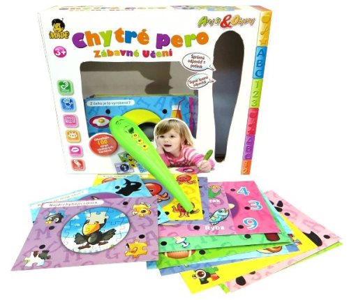 Chytré pero s kartami je interaktivní hra, která děti zaujme a zábavnou formou je mnohému naučí. S chytrým perem je učení snadné a zábavné. Pero vždy oznámí správnou odpověď rozsvícením zeleného světýlka nebo červeným světýlkem odpověď špatnou. Balení obsahuje 100 stran výukových kartiček - najdi číslo, najdi chybějící dílek, které písmeno chybí, kolik je na obrázku hodin..? Pero vydává zvukové efekty, světelná signalizace správné či špatné odpovědi, nastavení úrovně hlasitosti. Hlavní vlastnosti: výukové karty jsou v češtiněobsahuje 100 stran výukových kartičekučení zábavnou formouprovoz na 2 baterie AAA