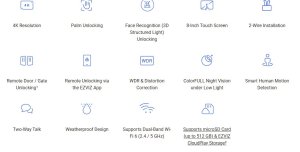 Kromě biometrie nabízí HP7 Pro také RFID čipy (3 přívěsky v balení), zadání číselného kódu, QR kód pro návštěvy, nebo přístup na dálku přes aplikaci EZVIZ. Dále můžete ovládat zámek i bránu přímo z interiérového 8" monitoru.