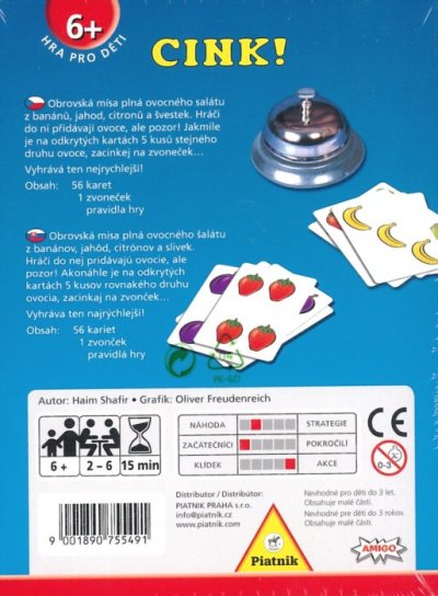 Obrovská mísa plná ovocného salátu z banánů, jahod, citronů a švestek. Hráči do ní přidávají ovoce, ale pozor! Jakmile je na odkrytých kartách 5 kusů stejného druhu ovoce, zacinkej na zvoneček...