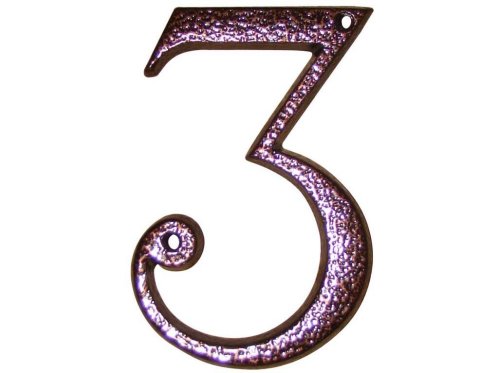 Domovní popisné číslo 3 je vyrobené ze zinkoslitiny. Povrchová úprava komaxit dodává číslu velkou odolnost proti povětrnostním vlivům.