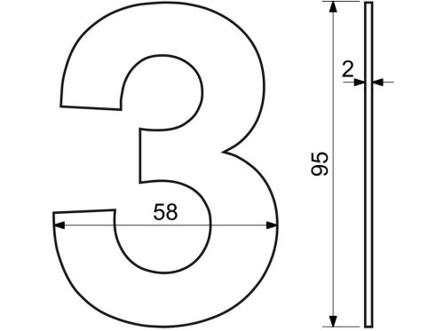 Číslo domovní č. 3, 95 mm, nerez ČER.