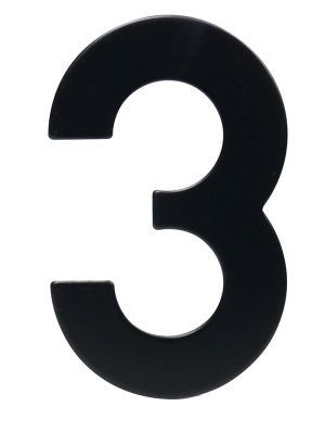 Číslo domovní č. 3, 95 mm, nerez ČER. výška: 95 mm materiál: nerez barva: černá matná (CE) Nerezové číslo v plochém „2D“ provedení.