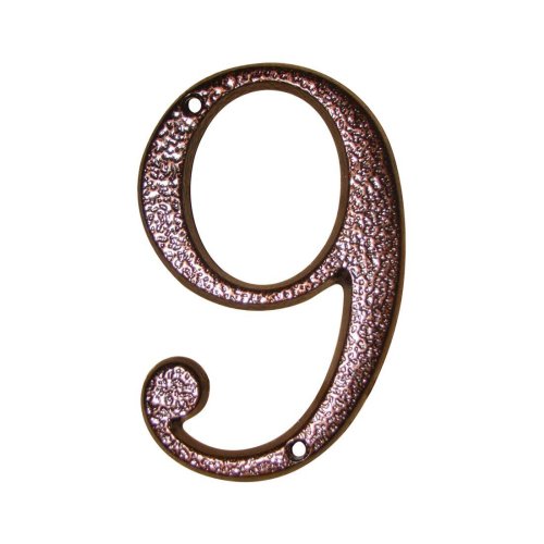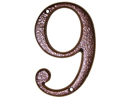 Domovní popisné číslo 9 je vyrobené ze zinkoslitiny. Povrchová úprava komaxit dodává číslu velkou odolnost proti povětrnostním vlivům.