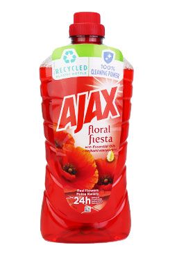 Objevte Ajax Floral Fiesta pro zářivě čisté povrchy a příjemně svěží domov až na 24 hod. po úklidu. Vůně vlčího máku. Čistící prostředek pro veškeré plochy v domácnosti. Dokonalá čistota, zářivý lesk, bez oplachování.