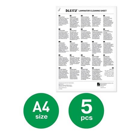 • Čisticí listy Leitz pro laminátory jsou ideální pro častou laminaci, pro školy, větší kanceláře, specializované provozy