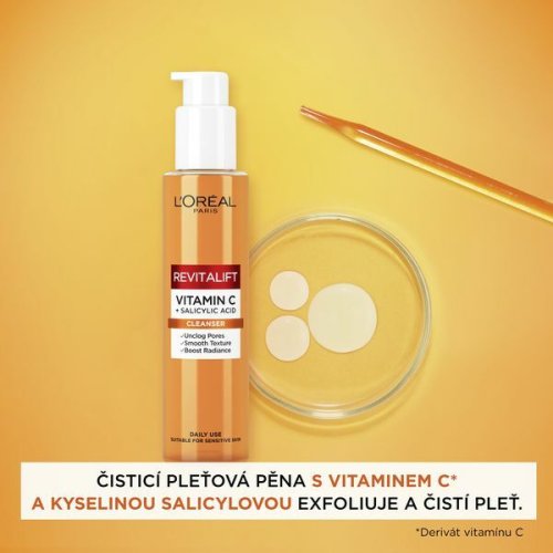 Čisticí pleťová pěna s vitamínem C a kyselinou salicylovou exfoliuje a čistí pleť. Vitamin C pomáhá rozjasnit tón pleti a rozzářit pleť. Kyselina salicylová zmenšuje póry a vyhlazuje strukturu pleti.