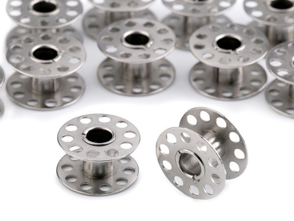 Kovová cívka na navinutí nití je určena k šicímu stroji Lada. Díky dírkám po stranách ji využijete také na výrobu originální bižuterie.