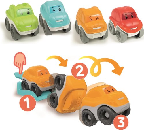 Usměvavé převracecí autíčko v pastelových barvách pro nejmenší. Vypusťte auto z přiložené základny a sledujte, jak dělá kotrmelce. Rozměry autíčka: 7 x 6 x 9 cm. Upozornění: Barevné provedení dodáváme dle skladových zásob.
