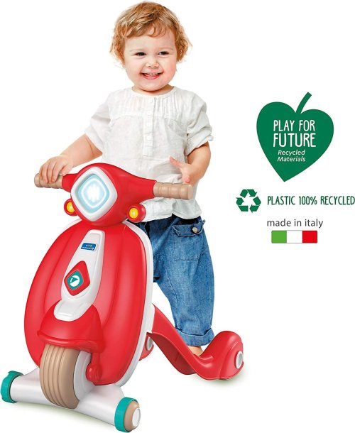 Podporuje rozvoj motoriky a koordinace pohybu. Pomáhá děťátku při prvních krůčcích. Obsahuje úložný prostor na malé hračky. Vyrobeno ze 100% recyklovaného plastu.
