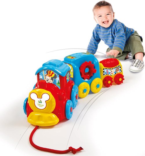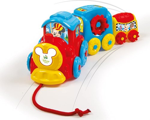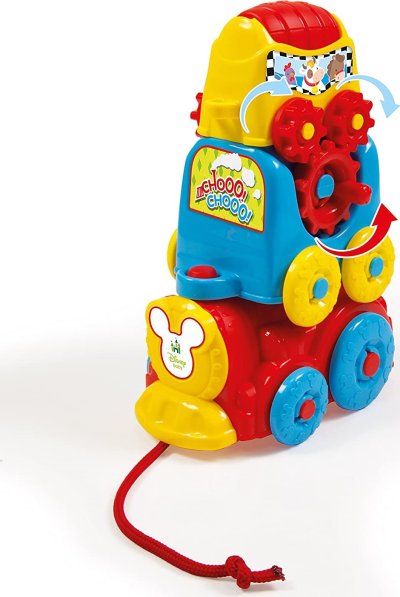 Veselý barevný vláček s motivem oblíbených postaviček Disney je plný překvapení. Dítě může vagonky skládat na sebe nebo vláček táhnout za sebou. Vláček má také spoustu koleček a mechanických částí, které dítě může zkoumat a objevovat.