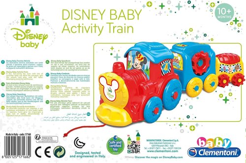 Celková délka vláčku: 38 cm. Značka BABY CLEMENTONI je synonymem kreativity, nadšení a důrazu na kvalitu. Hračky pomáhají rodičům při komunikaci s dítětem. Vzhled hračky a její inovativní barvy, netoxické a pevné materiály, vytvarovaný povrch a různé funkce pomáhají při rozvoji hmatových a sluchových schopností, napomáhají pohybové aktivitě a vyvolávají první logické asociace.
