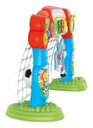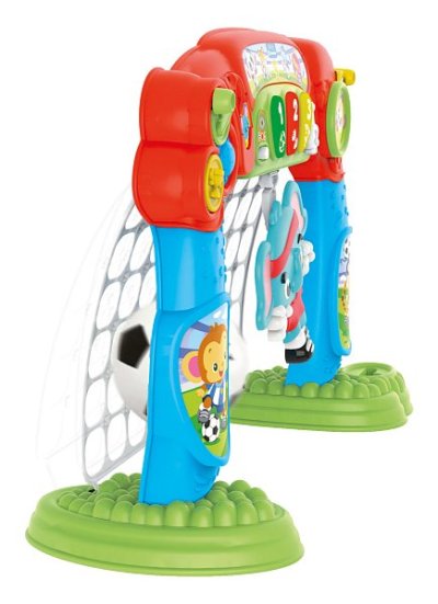 Interaktivní fotbalová branka rozeznává a oslavuje vstřelené góly zvukovými efekty a hudbou. Branka má brankáře - slona, který se po zaznění píšťalky pohybuje vpravo a vlevo.