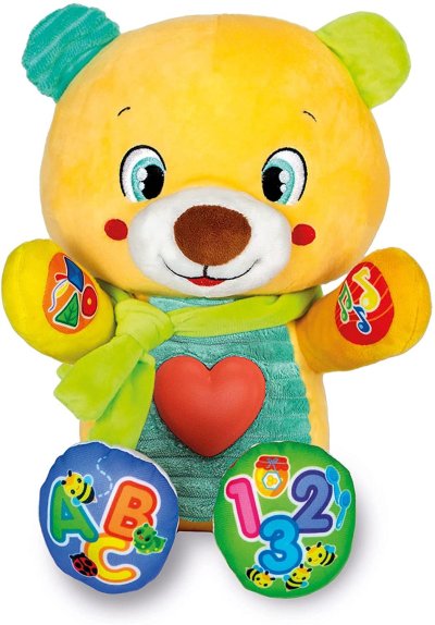 Dotykem 5 interaktivních tlačítek hračka mluví a seznamuje děti s prvními písmeny, čísly, tvary a barvami. Srdce je interaktivní tlačítko, které se rozsvítí, zatímco Méďa mluví a zpívá písničky a říkanky. V češtině, slovenštině a maďarštině (jazyk se nastavuje v prostoru pro baterie). Lze čistit pouze povrchově, neponořujte do vody.