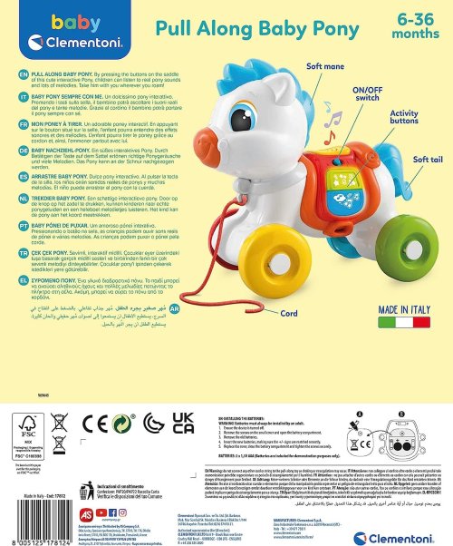 Tlačítka na sedle spouští zábavné zvuky a melodie. Pomocí šňůrky mohou děti poníka tahat už od prvních jistějších krůčků. Měkká hříva a ocas. Rozvíjí motorické dovednosti a podporuje smyslový rozvoj.