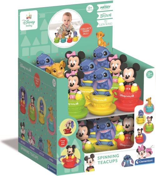 Barevný hrníček BABY Clementoni, který se po stlačení figurky promění v zábavný kolotoč.