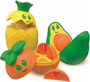 Tři barevné druhy ovoce vyrobené z recyklovaného plastu. Vyživují mysl a podněcují logické myšlení těch nejmenších. Vlastnosti: