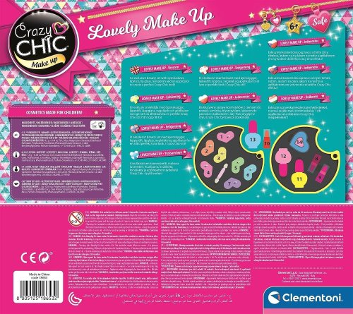 Obsahuje: 7 očních stínů, aplikátor, laky na nehty, lesk na rty a 2 rtěnky. Rozměry zavřené paletky: průměr 13 cm. Součástí balení je návod k použití.