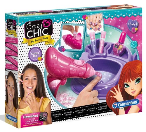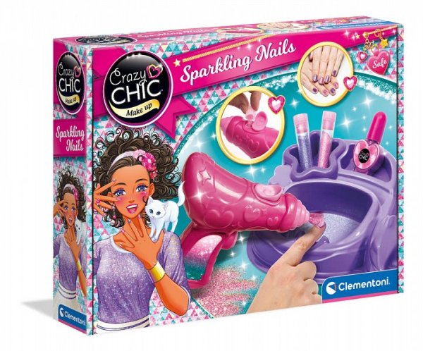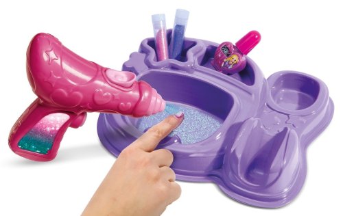 Ozdob si nehty zářivými třpytkami a okuzli své okolí! Natři své nehty lakem a dozdob je s pomocí pera vystřelujícího třpytky. Balení obsahuje: pracoviště pro zdobení nehtů, pero vystřelující flitry, lak na nehty, fialové třpytky, růžové třpytky, ilustrovaný návod. Vhodné pro děti od 6 let. Provoz na dvě baterie 1,5 V typu AA (nejsou součástí balení).