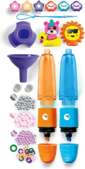 Kreativní sada Clementoni Small Highlighter Lab – Summer, umožňující dítěti sestavit a personalizovat 2 zakrešlovače podle vlastního vkusu, ideální pro kreativní projevy. Obsahuje vše nutné ke kompletaci fixů: různé barvy inkoustu, dekorace, postavičky a nástroje pro sestavení a zdobení. Podporuje rozvoj jemné motoriky, kreativního myšlení a estetického cítění u dětí. Vyvinuto a navrženo v Itálii, typické pro značku Clementoni, která vyniká kvalitou a hravým přístupem k učení. Přináší nejen zábavu, ale i vzdělávací prvek, přičemž dětem umožňuje experimentování s barvami, dekorem a vlastním designem produktů.