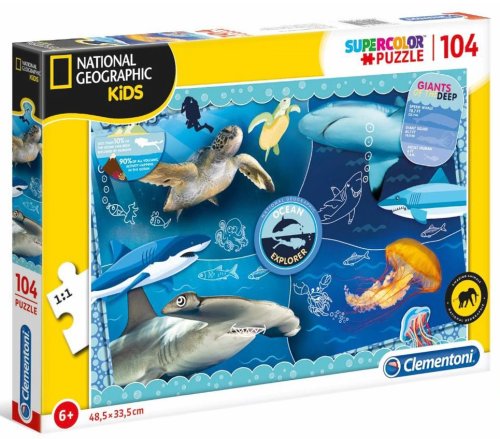 Puzzle s motivem podmořského světa od National Geographics s anglickými texty. Puzzle SuperColor Collection - edice navržená speciálně pro děti, pomáhá jim rozvíjet manuální zručnost a schopnost pozorování. Kvalita materiálů a exkluzivní technika tisku zaručují trvale krásné, živé a zářivé barvy. Doporučeno pro děti od 6 let. Rozměr složeného puzzle cca 48,5 x 33,5 cm