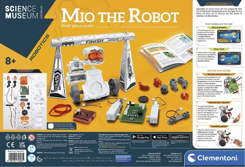 Unikátní vědecká sada Science & Play, která vám umožní sestavit skutečného robota. Mio je programovatelný robot, který vás zavede do světa robotiky. Mio je roztomilý malý robot, který se snadno programuje. Má také spoustu zábavných herních režimů. Je vybaven inovativním ultrazvukovým senzorem a dokáže detekovat vzdálenost od objektů, což umožňuje robotovi vyhýbat se překážkám, které mu stojí v cestě, a díky magnetickému ramenu může zachytit kovové předměty. Sada obsahuje širokou škálu vyměnitelných komponentů, které vám umožní transformovat robota tak, jak chcete. Ilustrovaná vědecká příručka poskytuje spoustu informací o elektronice, takže se můžete stát skutečným expertem na robotiku. Robota můžete ho ovládat pomocí mikrofonu nebo tleskat rukama. Můžete si také naprogramovat konkrétní trasu pomocí panelu s tlačítky na zadní straně robota. Baterie: 4 x AAA, nejsou součástí balení. Rozměry balení: 47 x 45,1 x 7 cm. Věk: 8+