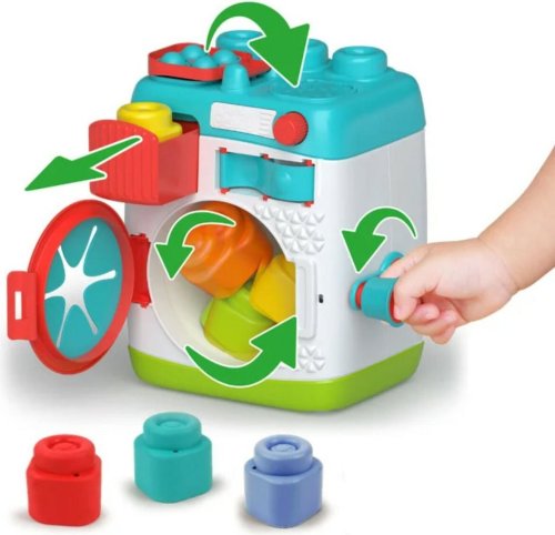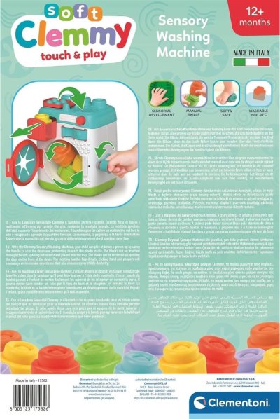 Obsahuje 5 měkkých kostek Clemmy, které děti mohou vkládat dovnitř, otáčet bočním kolečkem a sledovat „praní“ měkkého obsahu v bubnu – ideální pro rozvoj senzomotoriky a napodobování rolí. Víčko a ovládací prvky jsou navrženy s důrazem na velké plochy, bezpečnost a využití senzorických povrchů, které stimulují hmat a vizuální vjem malých dětí. Bez zvukových efektů, nepotřebuje baterie – hračka je připravena k hraní ihned po vybalení. Měkké kostky Clemmy jsou bezpečné a podporují hygienu i dlouhodobé hraní. Hračka pomáhá rozvíjet senzomotorické schopnosti, koordinaci ruka-oko a kreativní myšlení u nejmenších. Vyrobeno v Itálii, typicky pro značku Clemmy, která klade důraz na kvalitu a didaktický přístup k vývoji hraček.