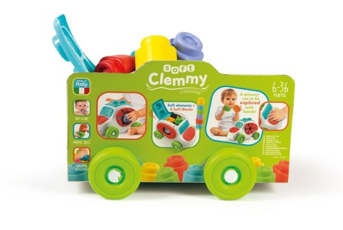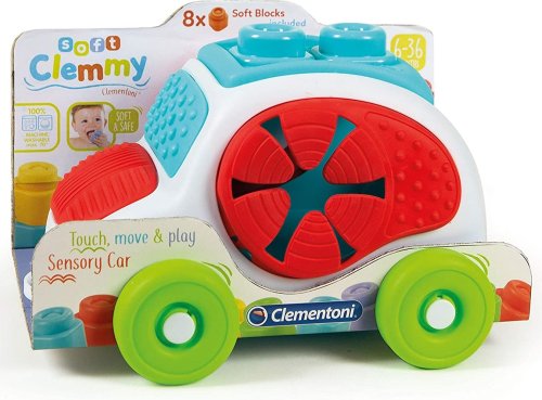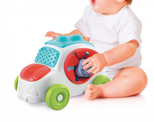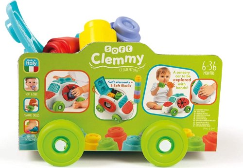 Zábava s vkládacím autíčkem. Díky CLEMMY kostkám může dítě stavět své první komíny a stavby. Vkládání různých tvarů podporuje rozvoj jemné motoriky a dítě se učí poznávat geometrické tvary a barvy. Hra s kostkami rozvíjí smyslové vnímání, manuální dovednosti a prostorové vnímání. Plastový box ve tvaru autíčka je praktický pro uskladnění kostek a jeho víko s otvory zároveň umožňuje dětem trénovat logiku a jemnou motoriku při vkládání tvarů do příslušných otvorů. Balení obsahuje: 8 barevných kostek a 1 plastové autíčko. Vhodné pro děti od 6 měsíců. POZNÁMKA: Kostičky lze používat i při hraní ve vodě, dají se mýt v myčce. Značka BABY CLEMENTONI je synonymem kreativity, nadšení a důrazu na kvalitu. Hračky pomáhají rodičům při komunikaci s dítětem. Vzhled hračky a její inovativní barvy, netoxické a pevné materiály, vytvarovaný povrch a různé funkce pomáhají při rozvoji hmatových a sluchových schopností, napomáhají pohybové aktivitě a vyvolávají první logické asociace. Z výrobků firmy jsou na českém trhu oblíbené zejména CLEMMY kostky, které jsou vyrobeny z měkké netoxické gumy. Ta je zároveň snadno omyvatelná a má lehkou vanilkovou vůni.