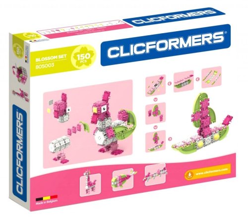 Pastelově růžová sada Clicfformers Blossom obsahuje 150 dílků vč. funkčních doplňků a bílých koleček. Vzhledem ke 4 různým principům spojování dílků lze popustit uzdu fantazii již téměř bez omezení. Stavět můžete prakticky cokoliv včetně velkých zvířat, zdobných kočárů, nábytku, klenotů, domečků apod. Série Blossom je charakteristická hravými světlými barvami s převládající bílou, růžovou a světle zelenou. Výsledné stavby lze díky odolnosti dílků a spojů využívat i jako funkční hračky. Obsahuje brožurku s návody a inspiracemi, které jsou však jen nepatrným zlomkem reálných konstrukčních možností. Vzhledem k vyššímu počtu dílků doporučujeme i pro rodiny s více dětmi. Vhodné pro malé stavitele od 4 let.