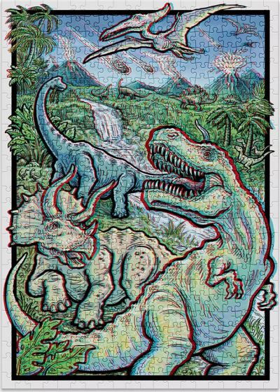 Nasaďte si 3D brýle a při skládání dávejte pozor, ať na Vás některý z dinosaurů nevyskočí z obrázku.