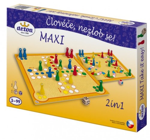 Člověče, nezlob se! je známá desková hra pro děti i dospělé. Obsahuje dřevěné figurky 25x60 mm s obličejem, hrací kostky o rozměrech 30x30x30 mm a oboustranný herní plán.