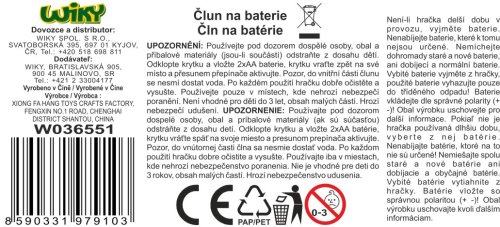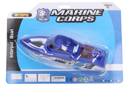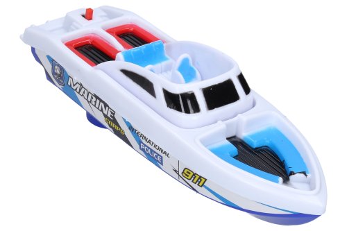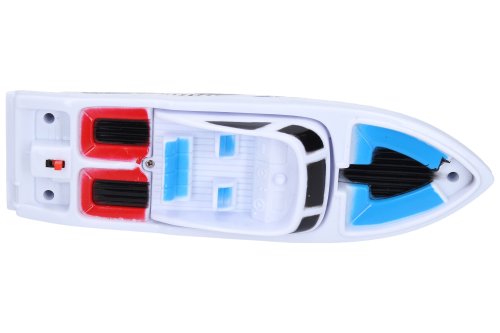 Člun. Rozměry 22,5x6,5x7 cm. Pohon na baterie. 2xAA baterie nejsou součástí. 2 barevné varianty: modrá, bílá.