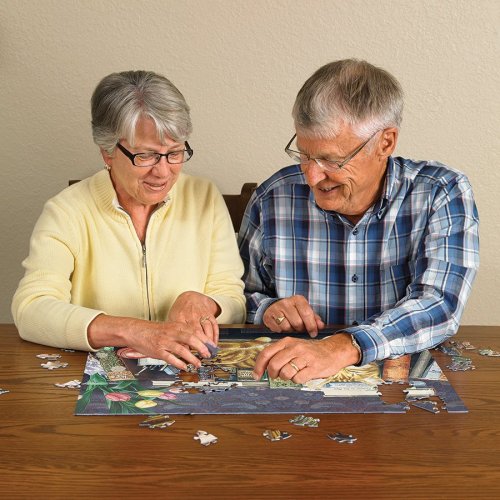 Puzzle s extra velkými dílky! Kolekce Easy Handling od výrobce COBBLE HILL je výborným řešením pro milovníky puzzle, kteří mají problémy se zrakem, pro starší věkové skupiny a děti. Dílky s průměrnou velikostí okolo 3 cm usnadňují manipulaci a slouží k procvičování motorických dovedností. Raznice puzzle COBBLE HILL nekopíruje standardní mřížku, rohy a hrany dílků nejsou vždy v jedné ose a dílky mají neobvyklý tvar. Obtížnost puzzle je tak vyšší než u klasické mřížkové raznice, kterou používají přední výrobci v Evropě. Součástí balení je i předloha o velikosti 31,6 x 22,9 cm. Rozměr složeného puzzle cca 67,7 x 48,9 cm