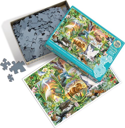 Skládá celá rodina! Jedinečnost rodinného puzzle od výrobce Cobble Hill spočívá v tom, že balení obsahuje dílky ve třech odlišných velikostech. Dílky mají malou, střední a velkou velikost a skládání je tak pohodlné pro děti, rodiče i prarodiče. V jedné části obrázku jsou velké dílky, které jsou díky svým rozměrům vhodné pro menší děti. Na druhé straně skládaného motivu jsou malé dílky, vhodné pro dospělé a větší děti, které jsou již zvyklé skládat puzzle. Prostřední část puzzle obsahuje dílky střední velikosti, na těchto dílcích jde zřetelně vidět skládaný motiv a sestavování obrázku je tak vhodné pro starší děti, babičku i dědečka. Velikosti dílků: velké cca 6 cm střední cca 3,5 cm malé cca 2 cm Raznice puzzle COBBLE HILL nekopíruje standardní mřížku, rohy a hrany dílků nejsou vždy v jedné ose a dílky mají neobvyklý tvar. Obtížnost puzzle je tak vyšší než u klasické mřížkové raznice, kterou používají přední výrobci v Evropě. Rozměr složeného puzzle cca 67,6 x 48,9 cm